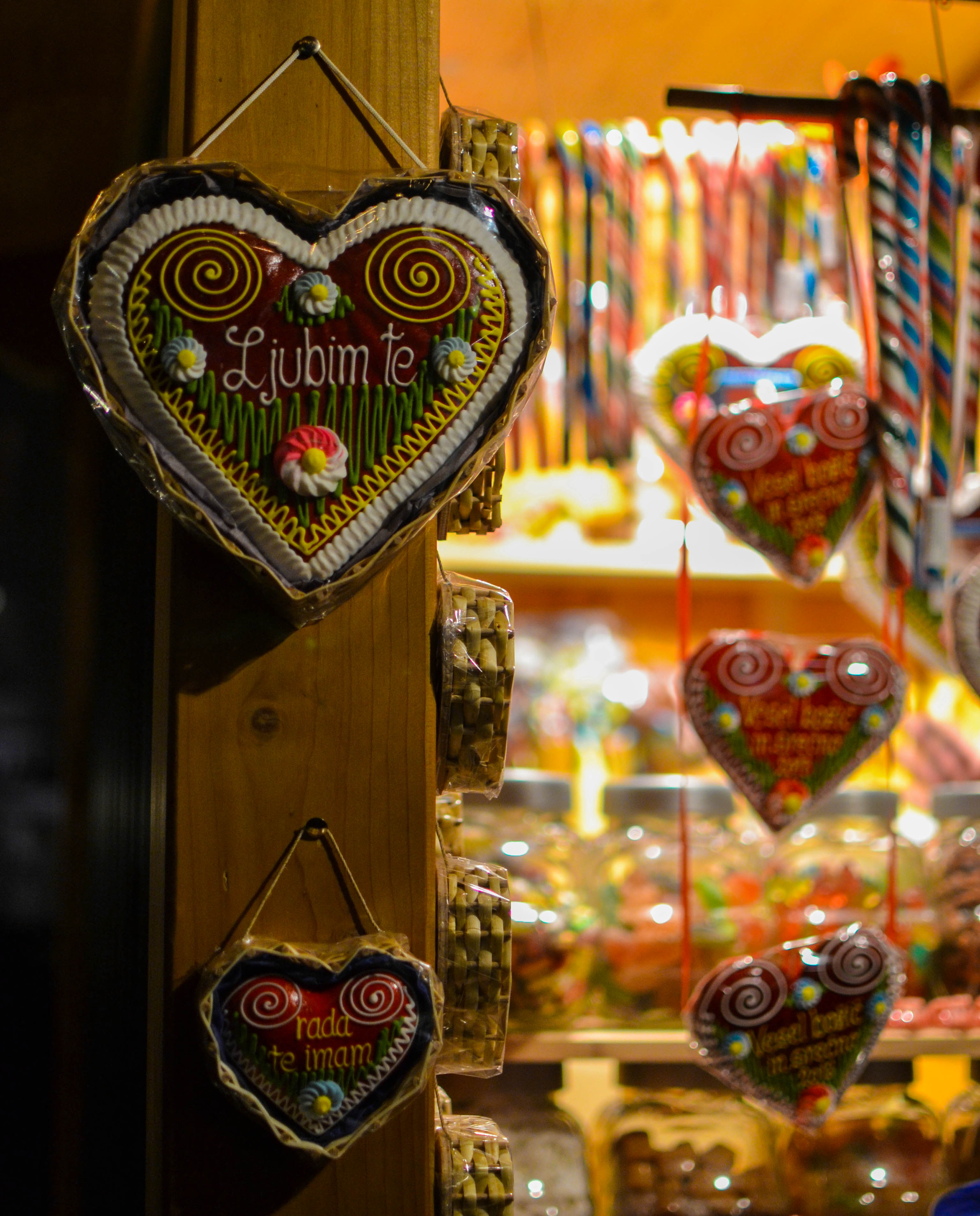 The Christkindlmarkt has existed in Vienna since the Middle Ages, and the city boasts no fewer than thirteen separate and distinct markets over the holidays. The largest market, 1) Wiener Christkindlmarkt at Rathausplatz, spilled out in front the Gothic-styled City Hall, and was framed by trees draped with heart-shaped lanterns. Everywhere were tourists of every make and mold, snapping up painted glass ornaments, winter hats and bread bowls full of hot goulash. Booth after booth was chockablock with heart-shaped Lebkuchen that wished passers-by a Fröhliche Weihnachten or a Glückliches Neues Jahr.
